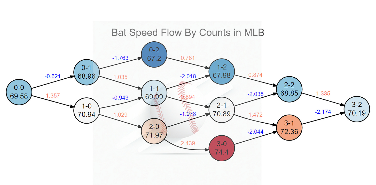The dynamics of an at-bat shift dramatically depending on the count. As hitters gain the upper hand with favorable ball counts, they’re often able to take more aggressive swings in a wider range of situations. Conversely, when they fall behind, we typically see a more conservative, defensive approach take over. In previous discussions, we’ve explored how bat speed and swing patterns adjust based on the count. In this piece, I want to take that analysis a step further—diving into how hitters not only modify their bat speed, but also shift their point of contact. Using data from Baseball Savant collected throughout the 2025 season, we’ll examine how players are adapting their approach in real time.