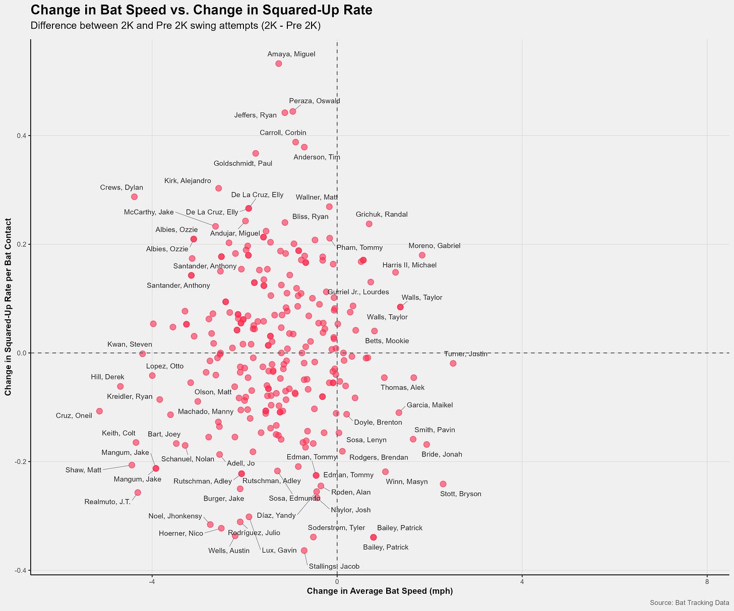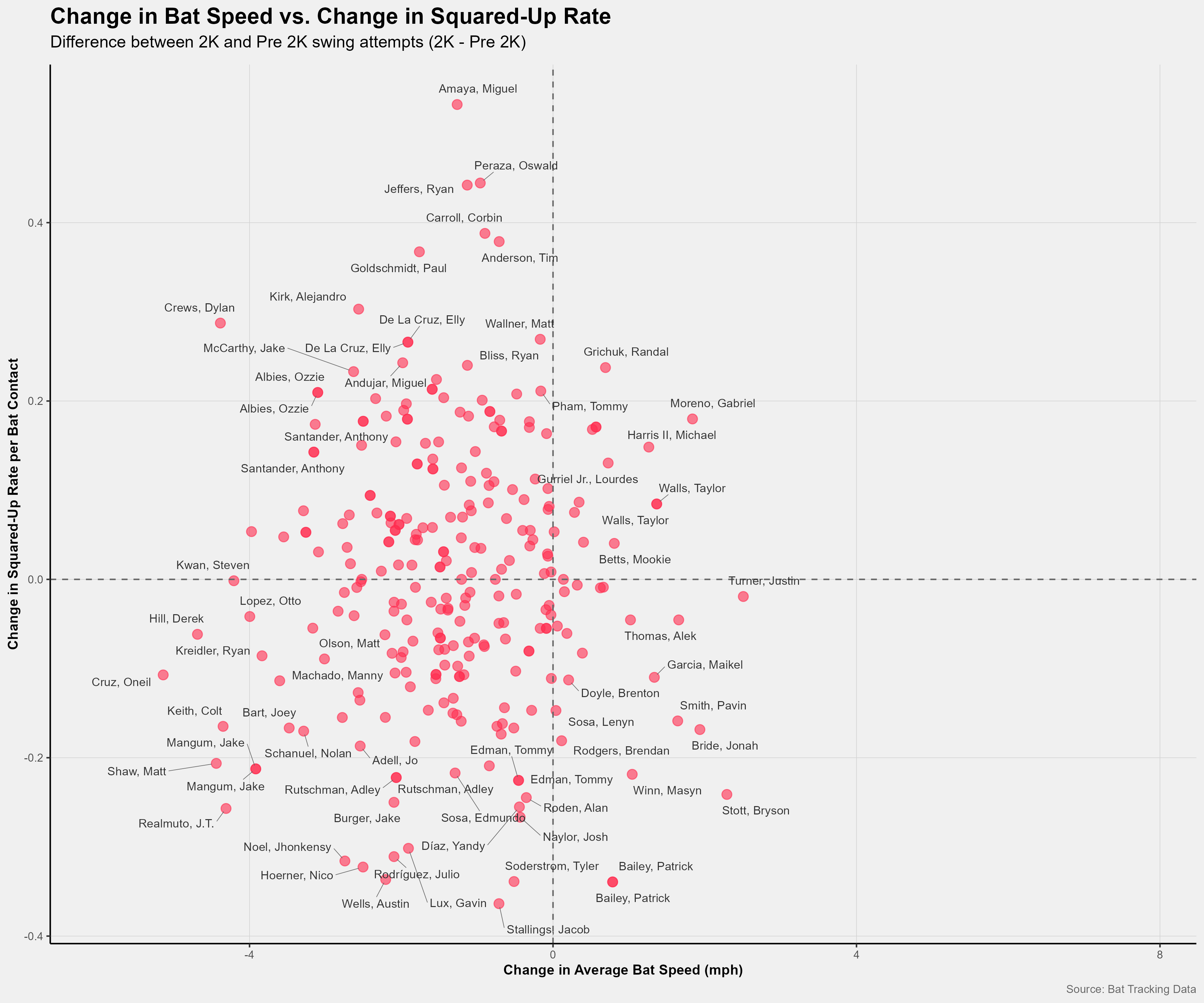 Next lets look at how Bat Speed Changes and how they compare to Squared Up Rate.